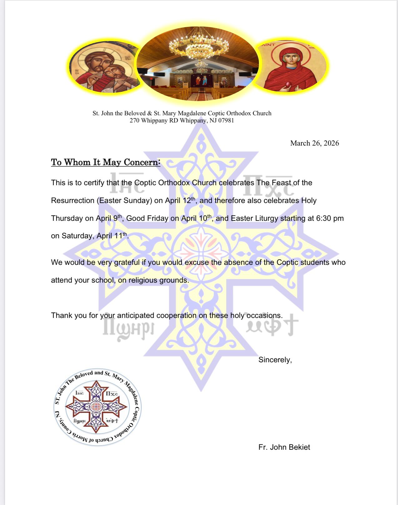 The Coptic Orthodox Church,
